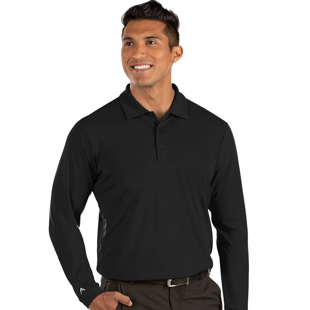 Get active with a custom Antigua Men’s Black Tribute Long Sleeve T-Shirt with embroidery. The long sleeve tee is made of 100% polyester with side slits and UPF sun protection of 50+ for those days when there is a chill in the air, yet the sun is shining bright. The sleek look of this long sleeve tee is ideal for golf events, as client gifts, or as employee gifts with a company logo. Add a custom logo to add to your logoed apparel line and watch as these fly off shelves. Available in a variety of sizes to fit your needs, so place your order today.