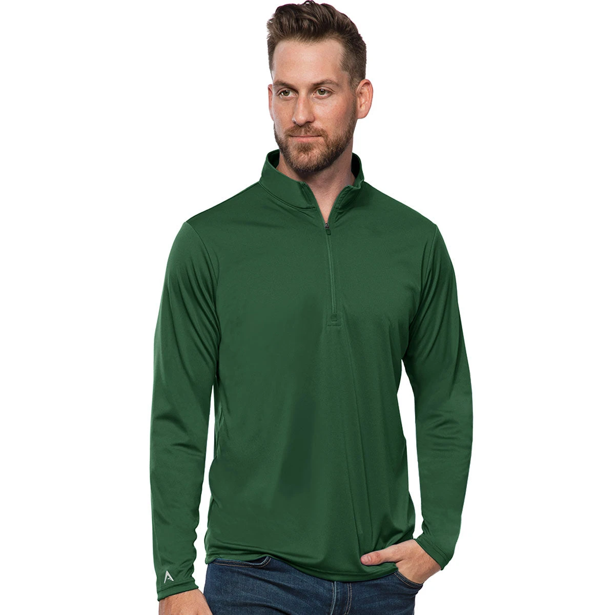 The custom Antigua Men’s Dark Pine Tribute 1/4 Zip Pullover is an excellent promotional gift to stock up on. Add your embroidery company logo to the pullover and hand it out at upcoming recruiting events.