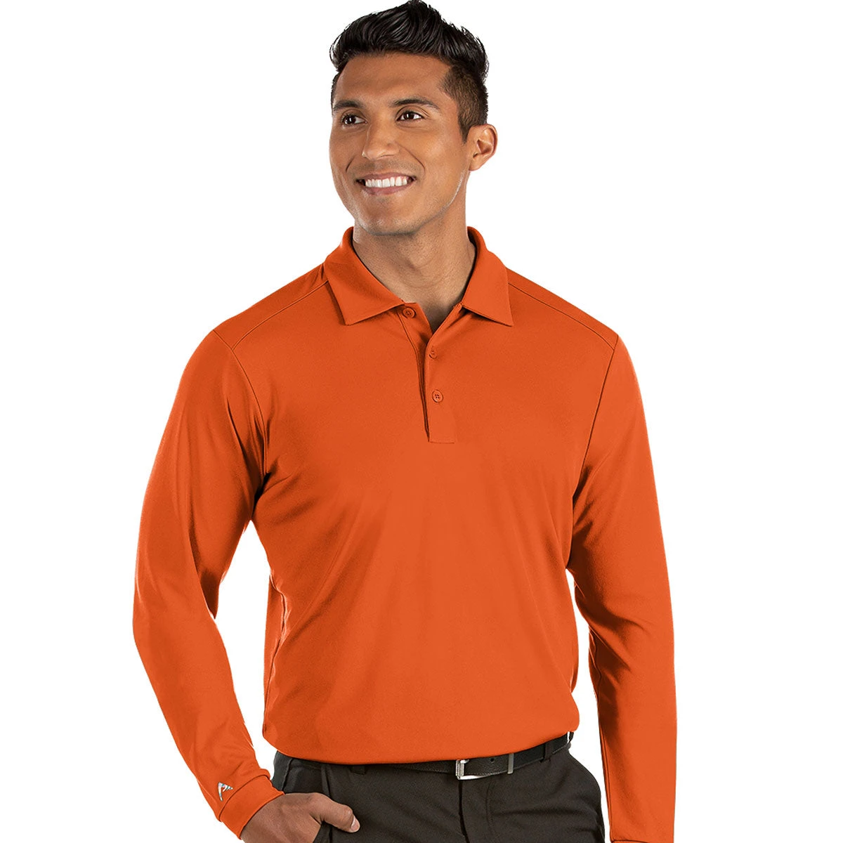 Get active with a custom Antigua Men’s Mango Tribute Long Sleeve T-Shirt with embroidery. The long sleeve tee is made of 100% polyester with side slits and UPF sun protection of 50+ for those days when there is a chill in the air, yet the sun is shining bright. The sleek look of this long sleeve tee is ideal for golf events, as client gifts, or as employee gifts with a company logo. Add a custom logo to add to your logoed apparel line and watch as these fly off shelves. Available in a variety of sizes to fit your needs, so place your order today.