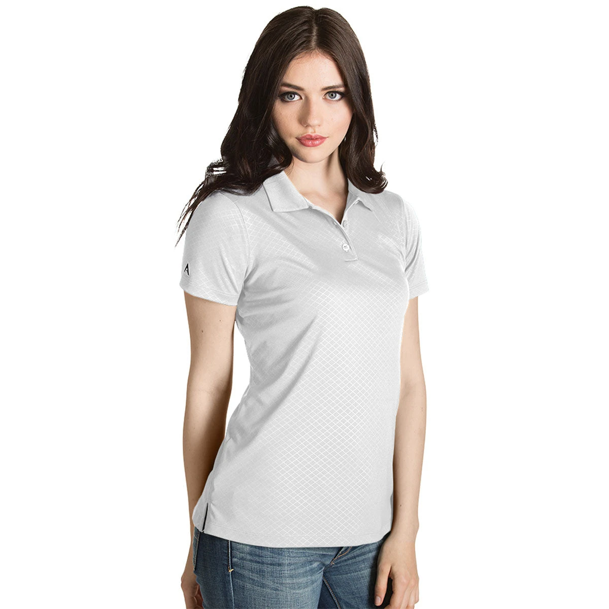 With an embossed interlock diamond pattern, the custom logoed Antigua Women’s White Inspire Polo will be the talk of the next company golf event. Side slits enhance the appearance of this women’s polo. Add your embroidered logo on the left sleeve and invite your hard working employees to become brand ambassadors for your company by giving away the polo. With a logo, you reach more customer prospects at civic and professional networking events. You also provide your team with a comfortable piece of corporate apparel they will be happy to wear at company events and after hours on the golf course.
